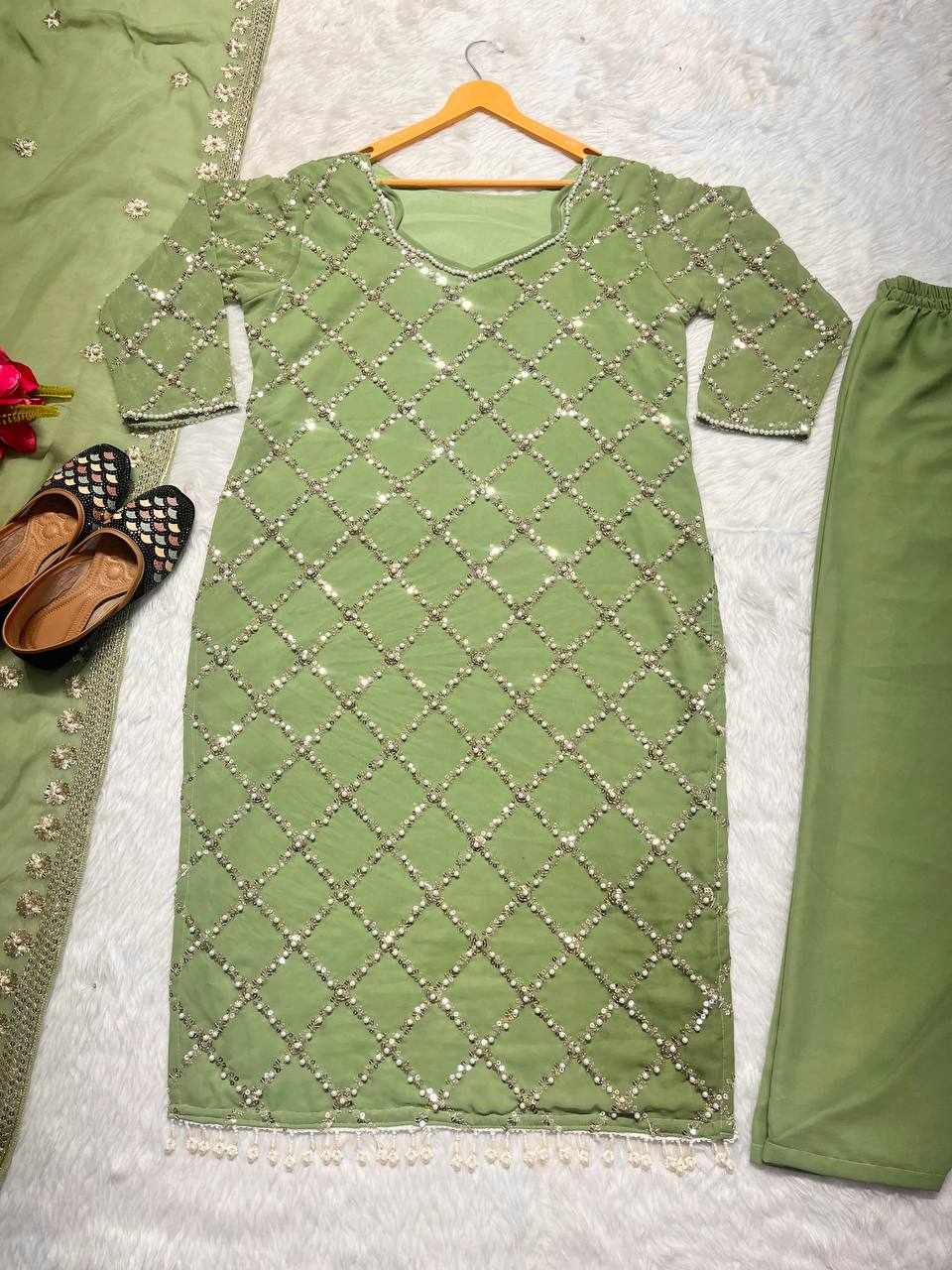 MF 409 New Fancy Embroidered Light Green Dress