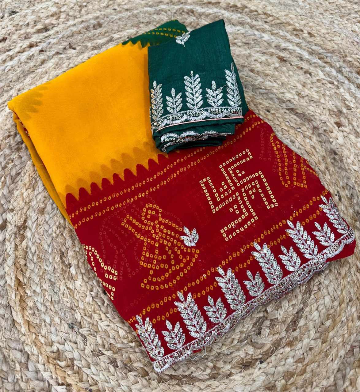 | Name : | PIYU 1055 KHAJURI BORDER-4 YELLOW-RED SAREE |