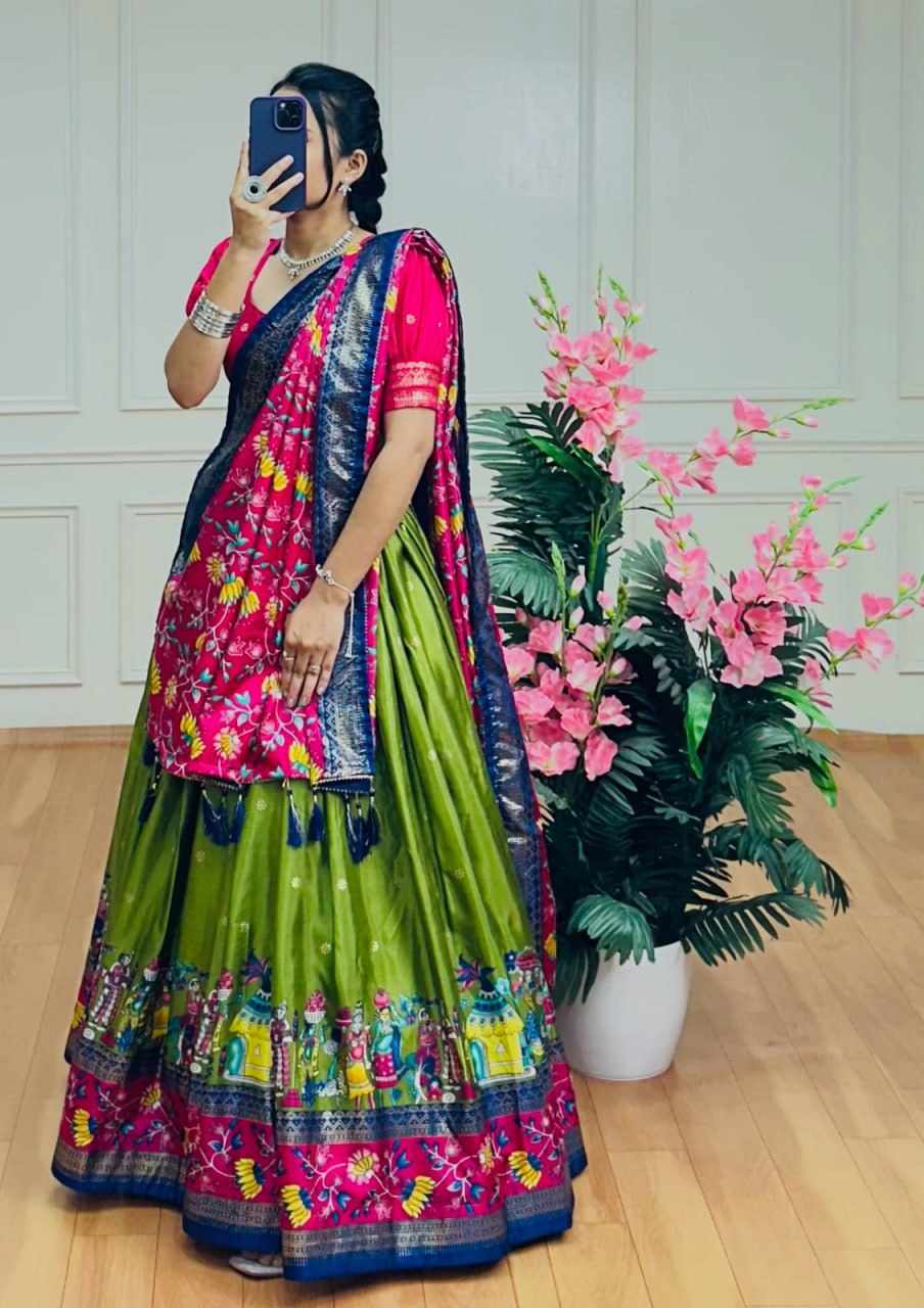 Reviews for PIYU 10-2 Silk Chaniya Choli With Viving Foil Mehndi Colour Lehnga