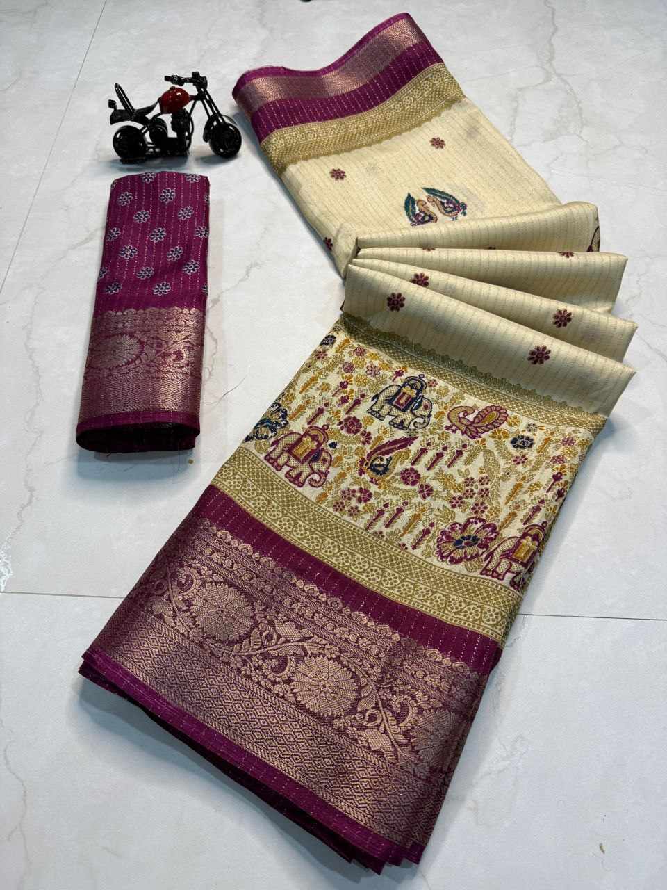 | Name : | PIYU 1044 RECCO HATHI Wine Saree |