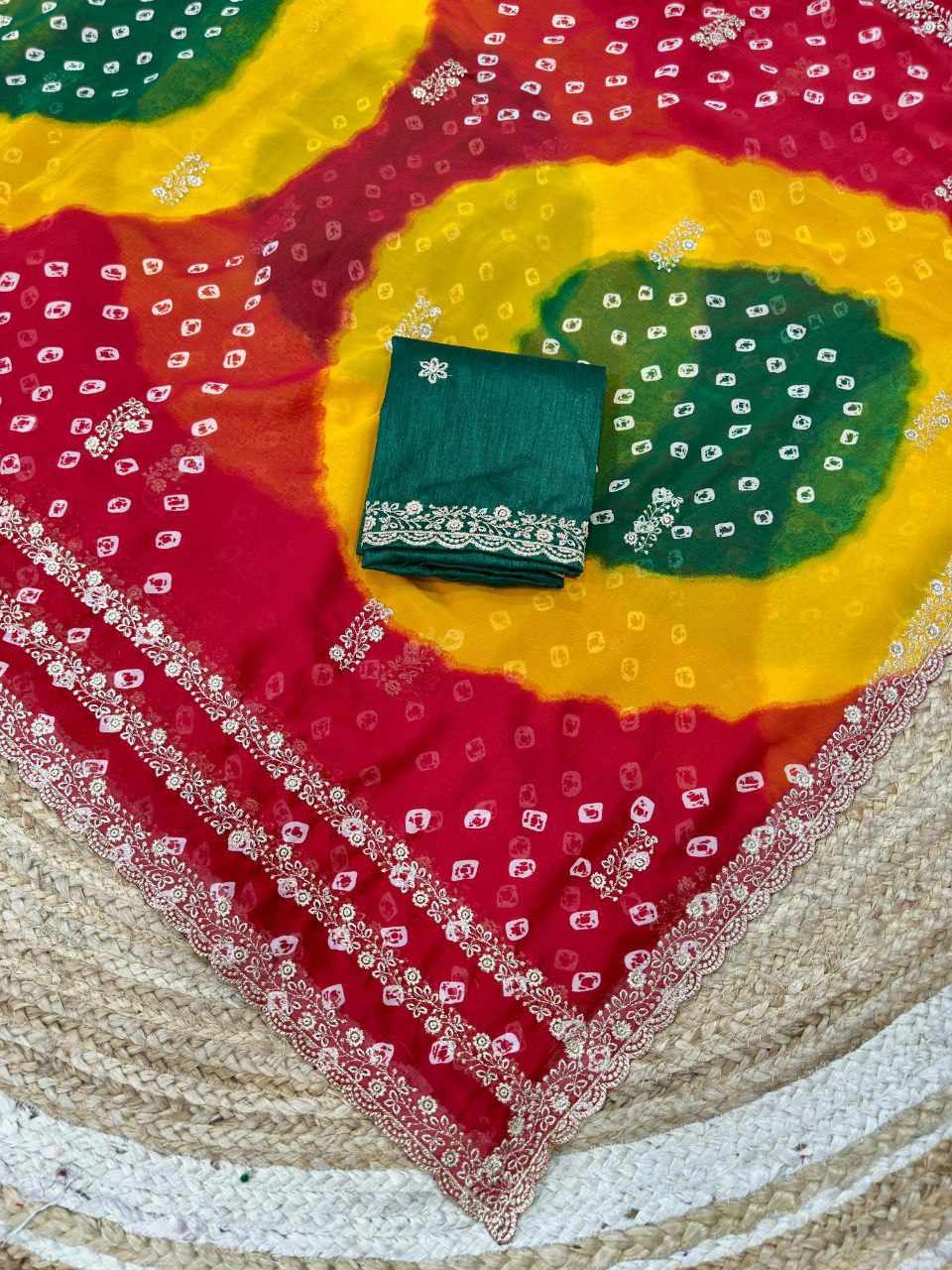 | Name : | PIYU P1051 LEHERIYA BANDHANI-3 Red Saree |